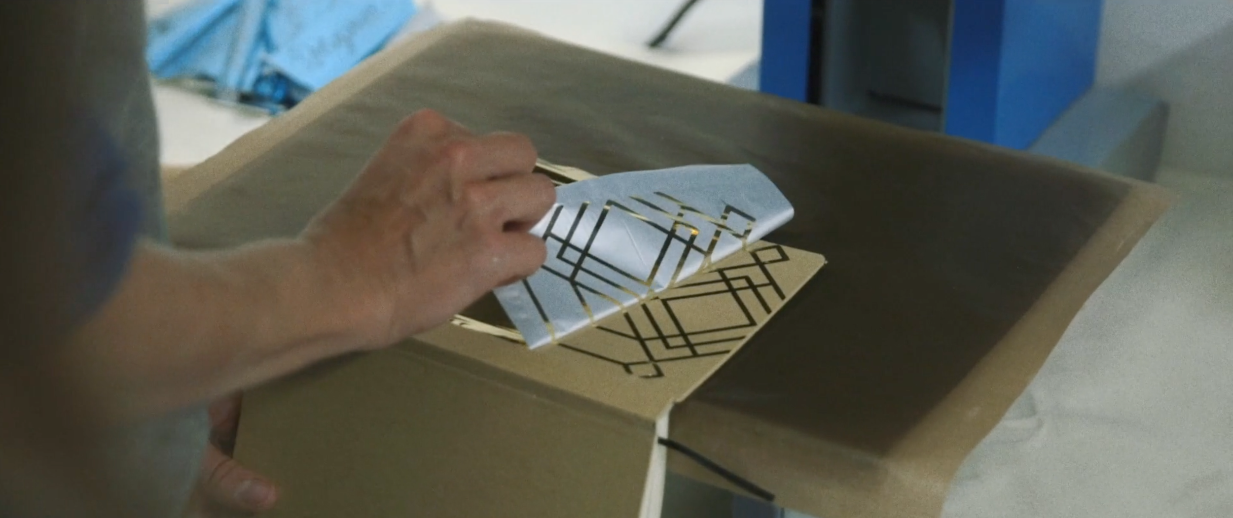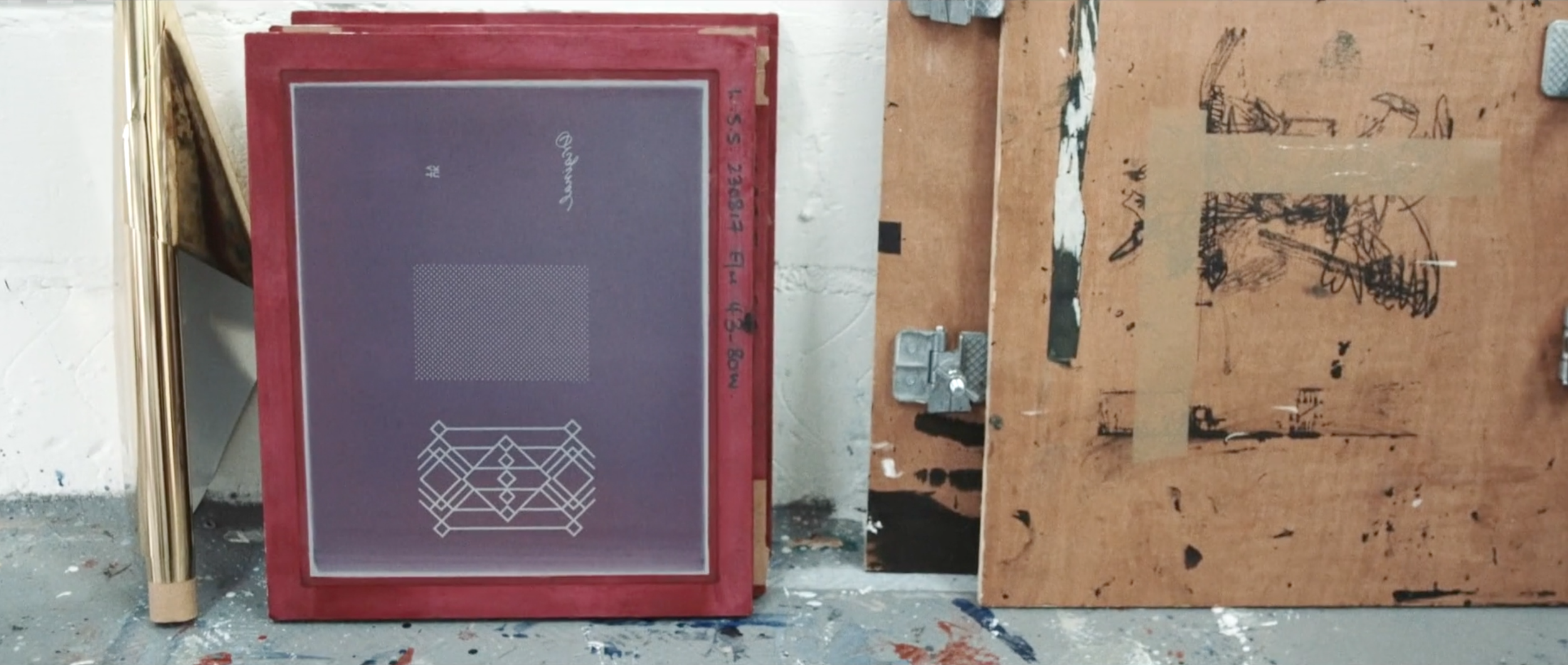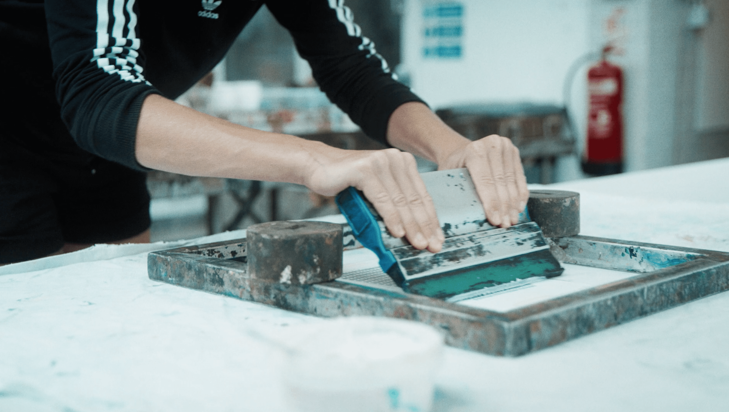 Screen print and hand paint with adhesive