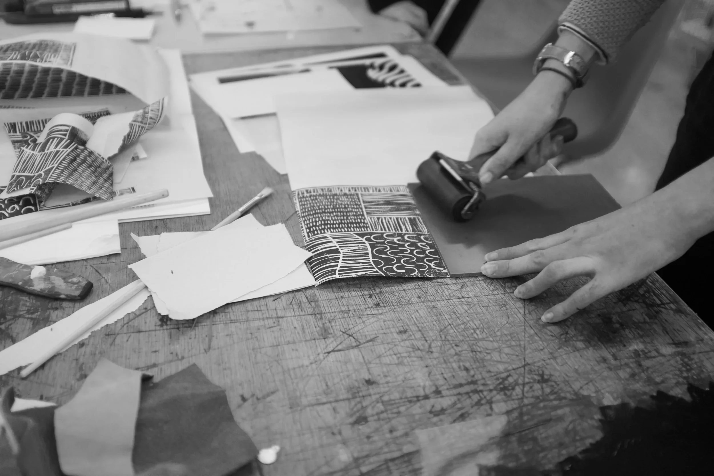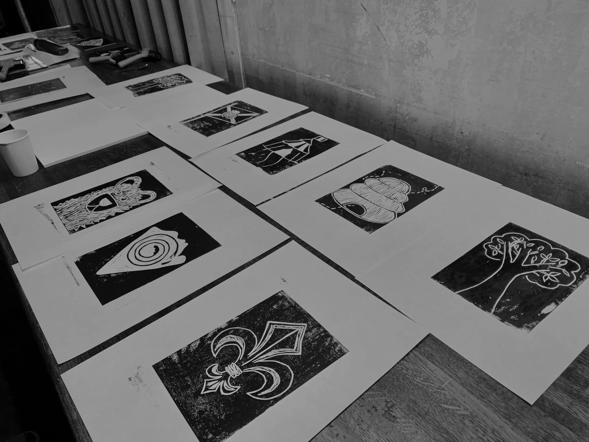 In this workshop we will explore texture and mark-making techniques using lino cutting tools, before printing with water-based block printing inks. You will be guided through the full process, from designing your image to creating finished prints, with an emphasis on experimentation and creative freedom. By the end of the workshop, you will have the skills and confidence to continue lino printing at home. This workshop encourages a playful and contemporary approach to printmaking, opening up new ways of thinking about lino as a creative medium. This lino printing workshop is ideal for beginners and for those with a little prior experience.