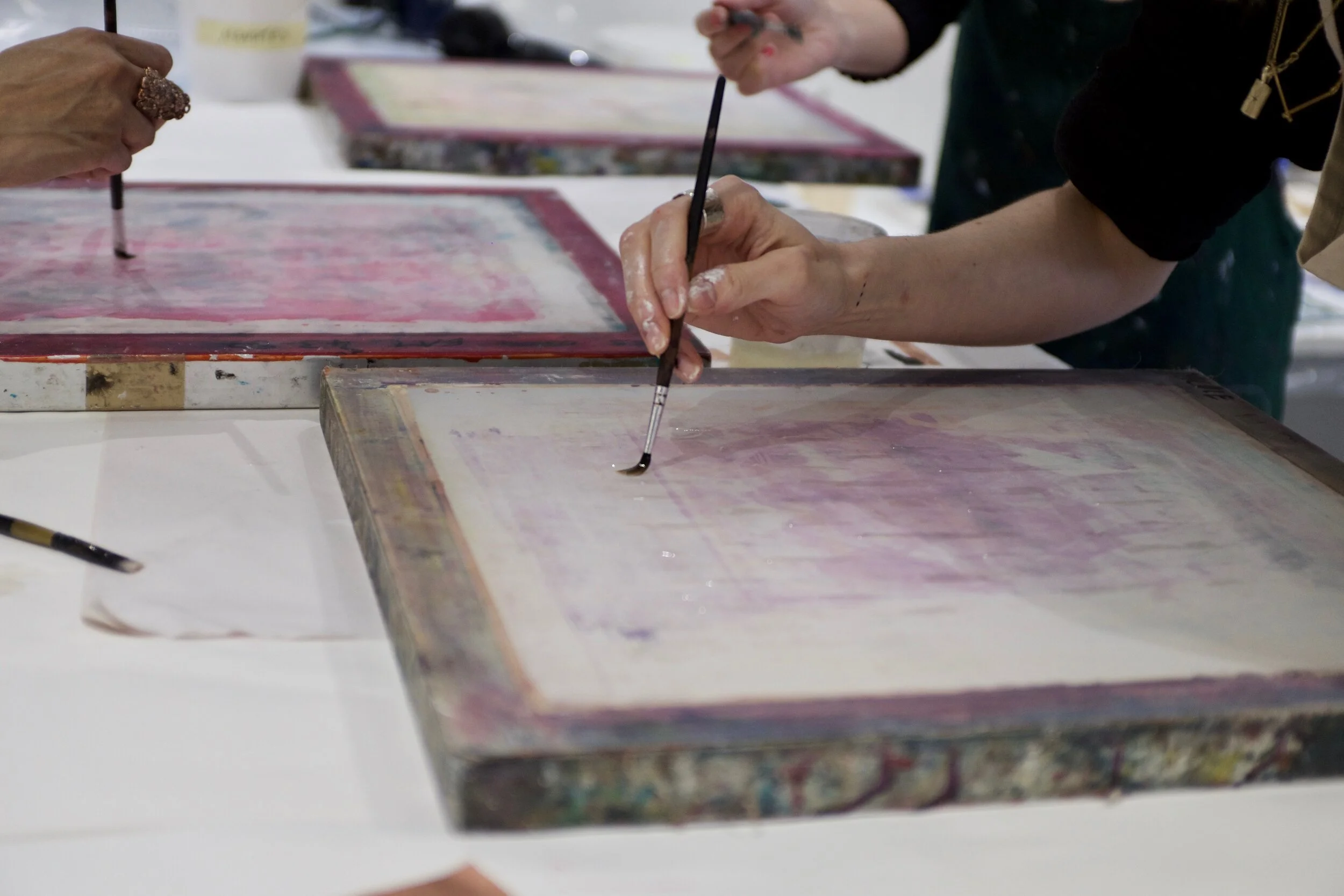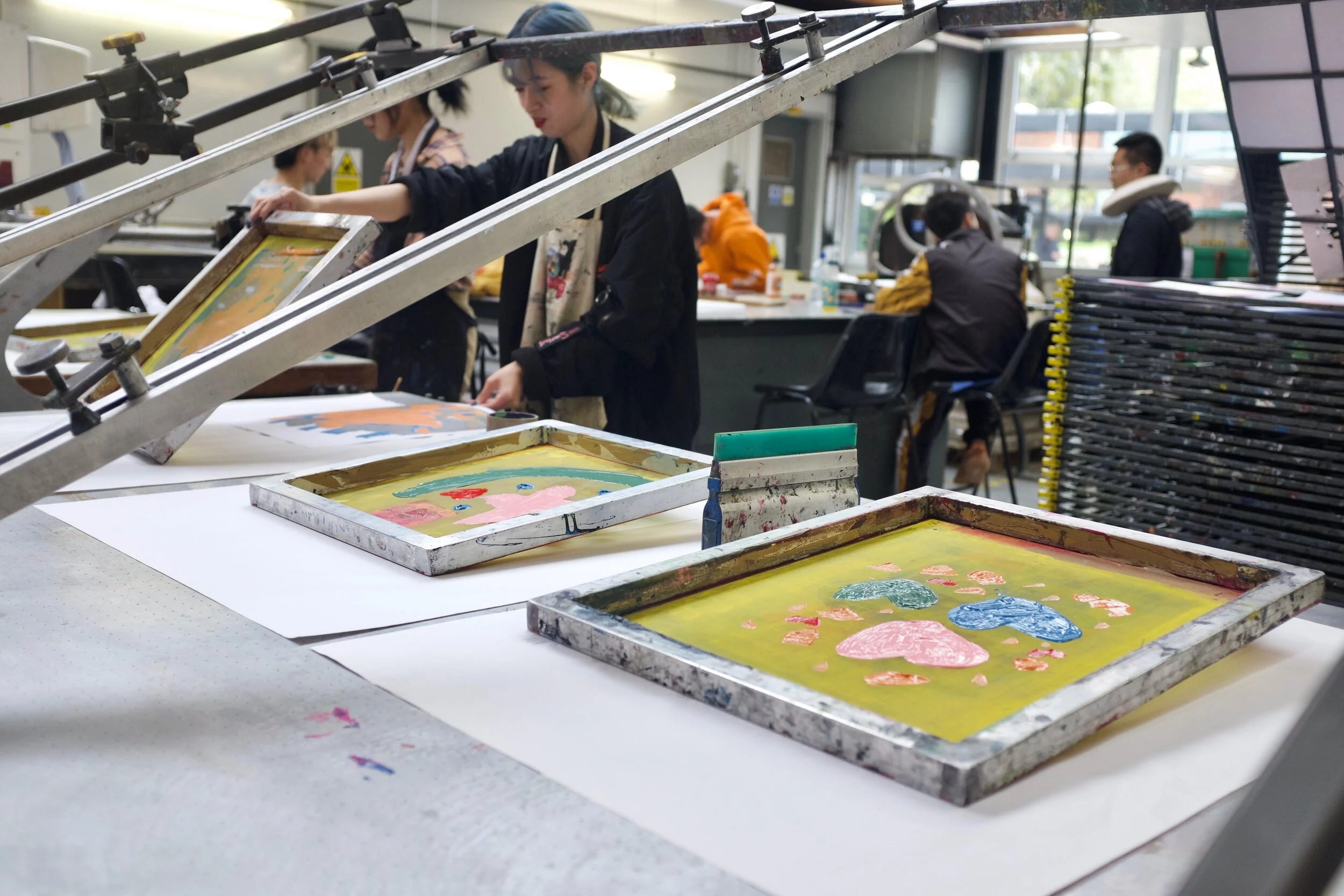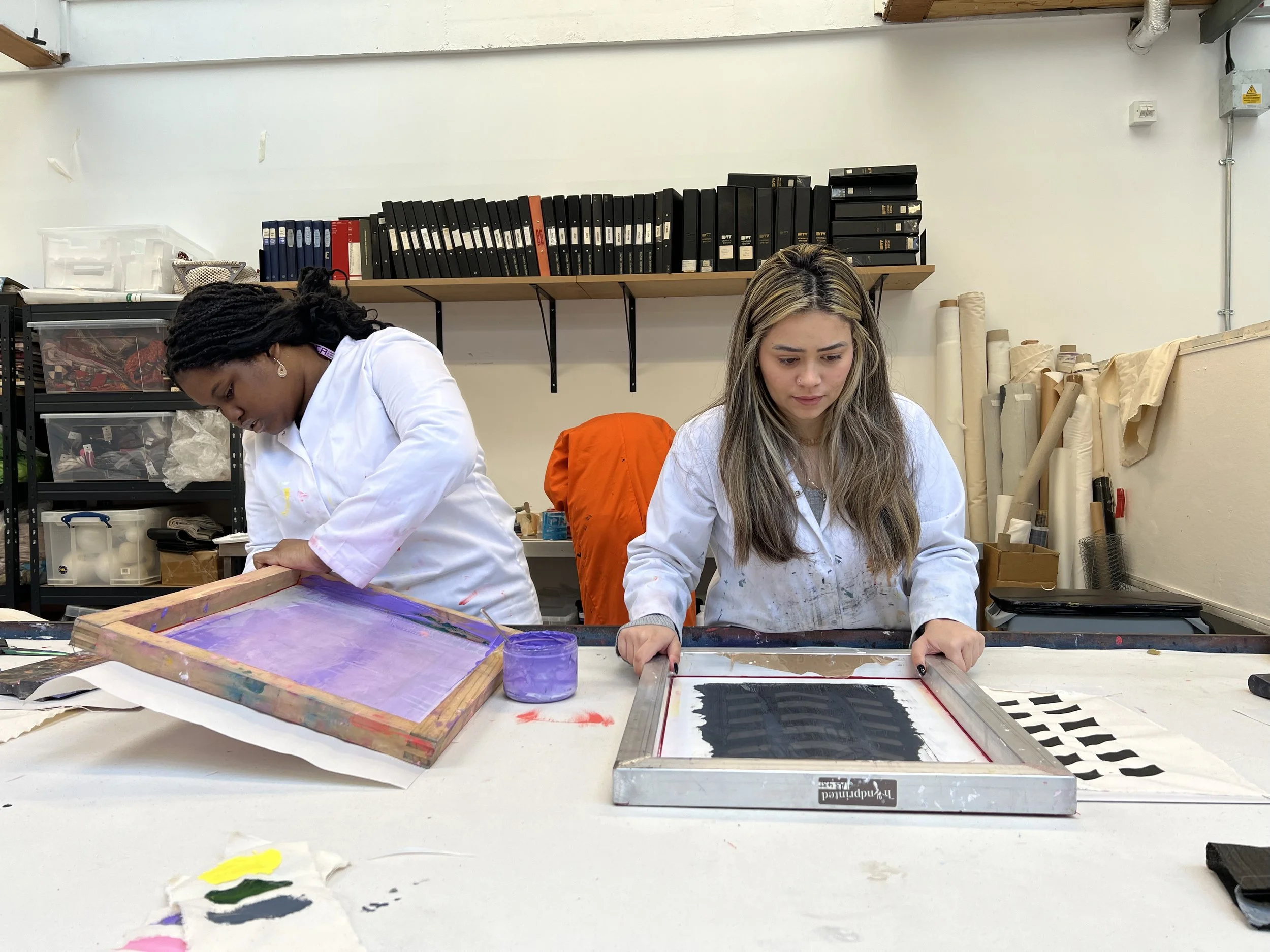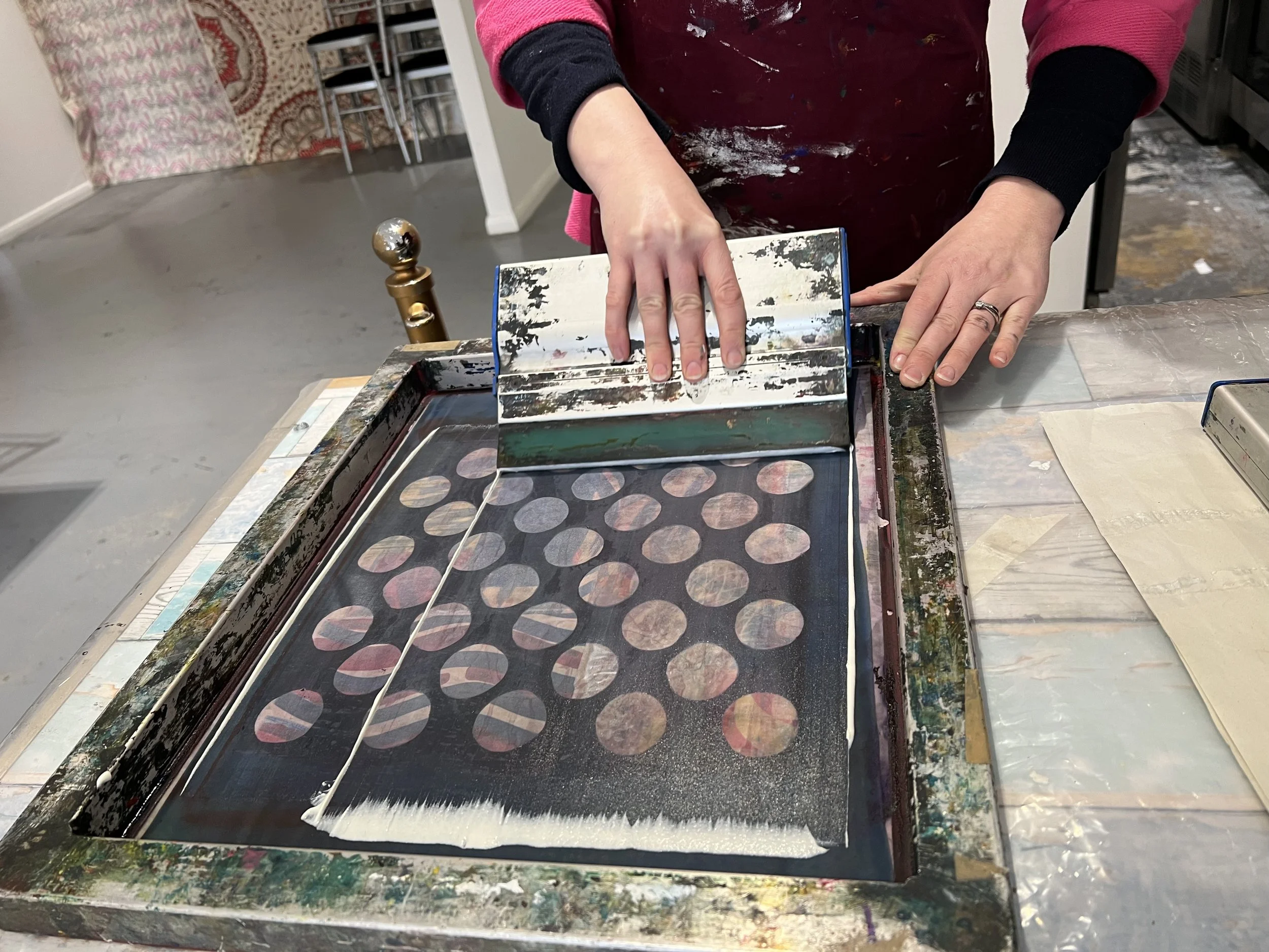 This workshop is suitable for beginners and experienced printers. Printers will draw and create hand cut paper stencils for screen printing onto textile surfaces. In this workshop you will print onto a range of heavy and light weight materials, layering colours and designs. In this hands on and practical workshop, you will explore how to prepare your space for printing, mix your own print pasts using water-based inks and binders, puff, pearl and manutex. By the end of the workshop, you will have a collection of A5-A3 samples for your portfolios, sketchbooks and mood-boards. These workshops will help build confidence in drawing, printing and encourage mixed media creativity within design. You will learn a greater understanding of the process, equipment and materials needed to independently print at home.