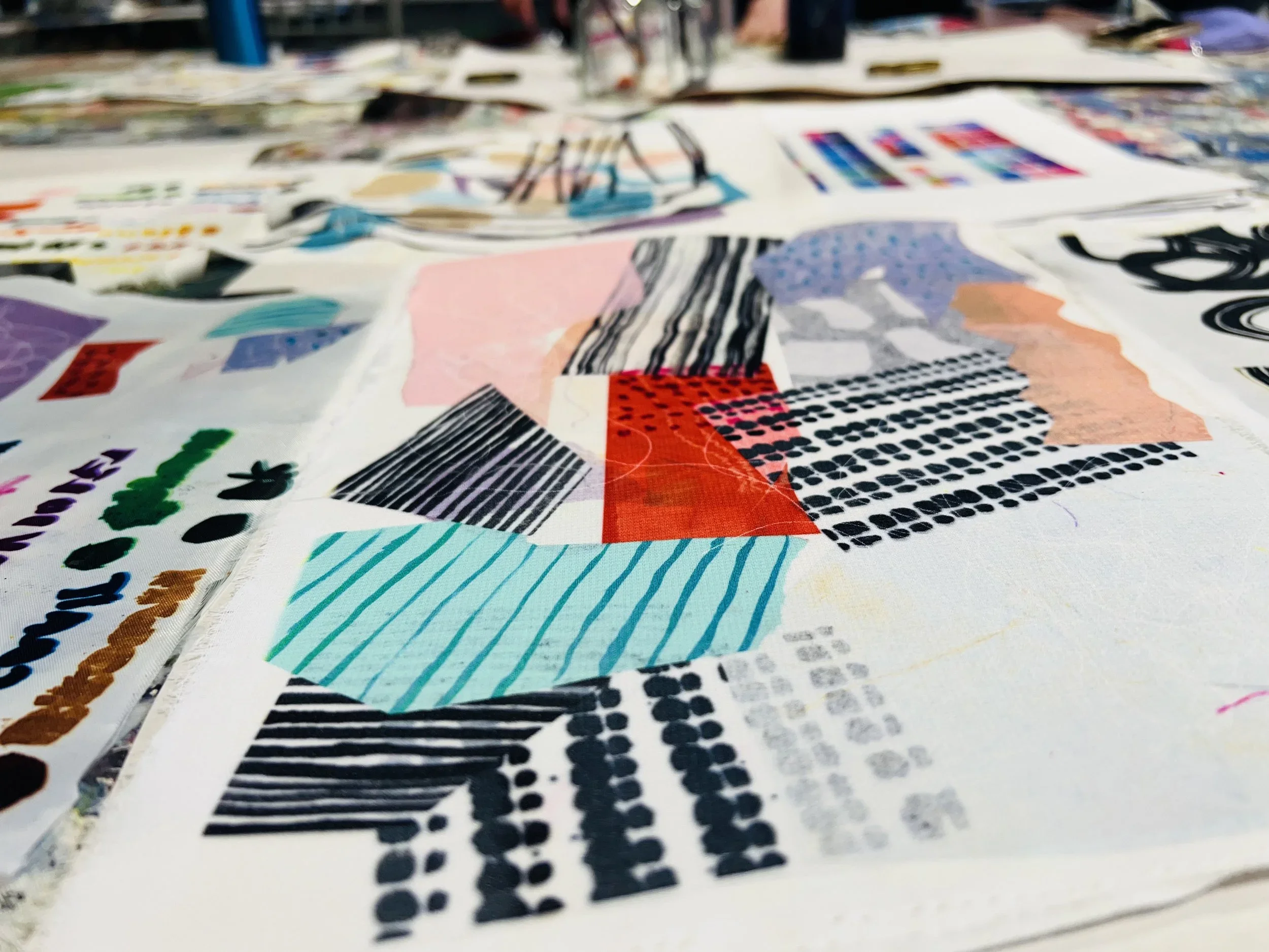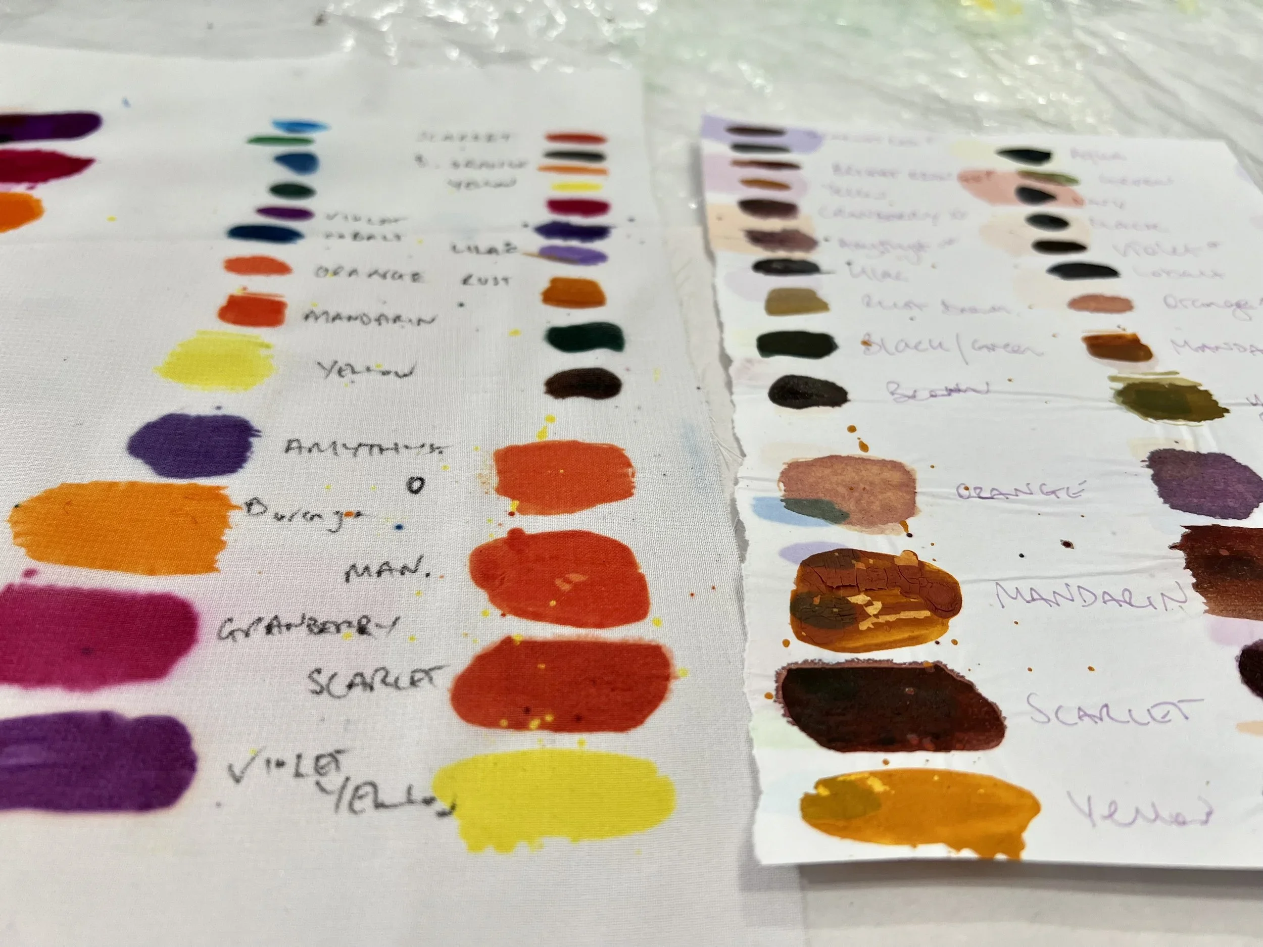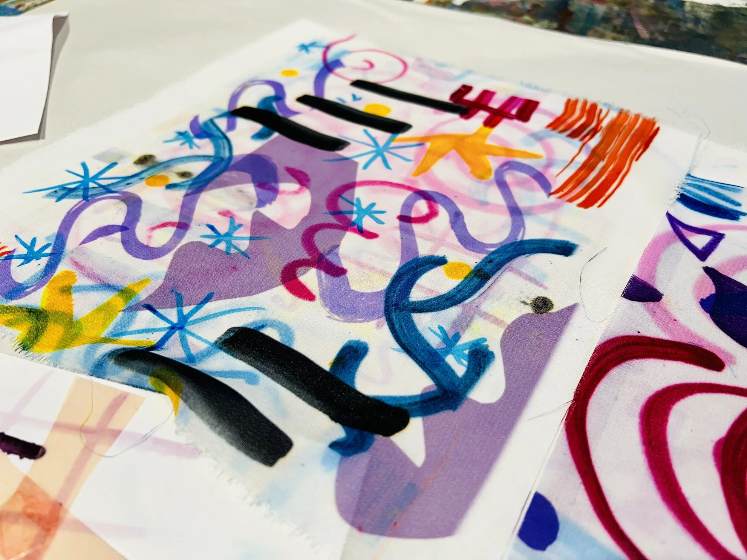 In this workshop, we will draw and mark-make using a wide range of colourful liquid disperse dyes onto paper, techniques include hand painting, screen printing, and relief printing. The dyed papers are then transferred onto fabric using a heat press. Colours can be layered, and flat objects or stencils can be used as resists to create varied textures and effects. The workshop also includes experimentation with ready-made sublimation papers, which may be ripped, scrunched, or combined with hand-cut stencils to create unique printed designs onto fabric. All materials will be provided in this workshop, and participants are encouraged to explore any materials they may have at home for printing during the session.