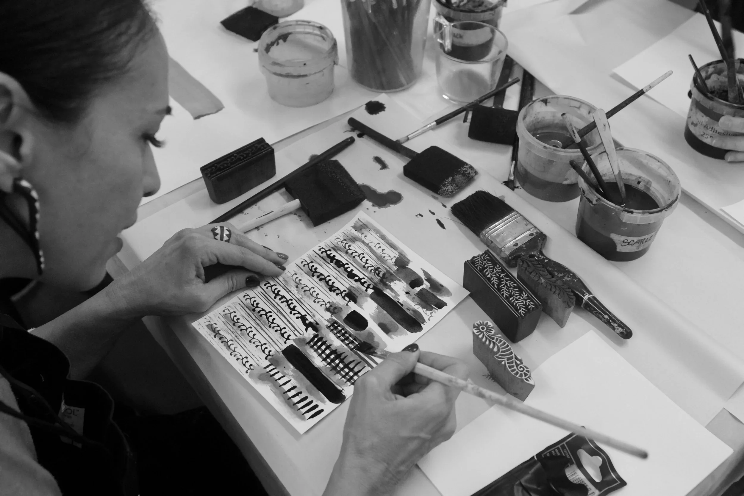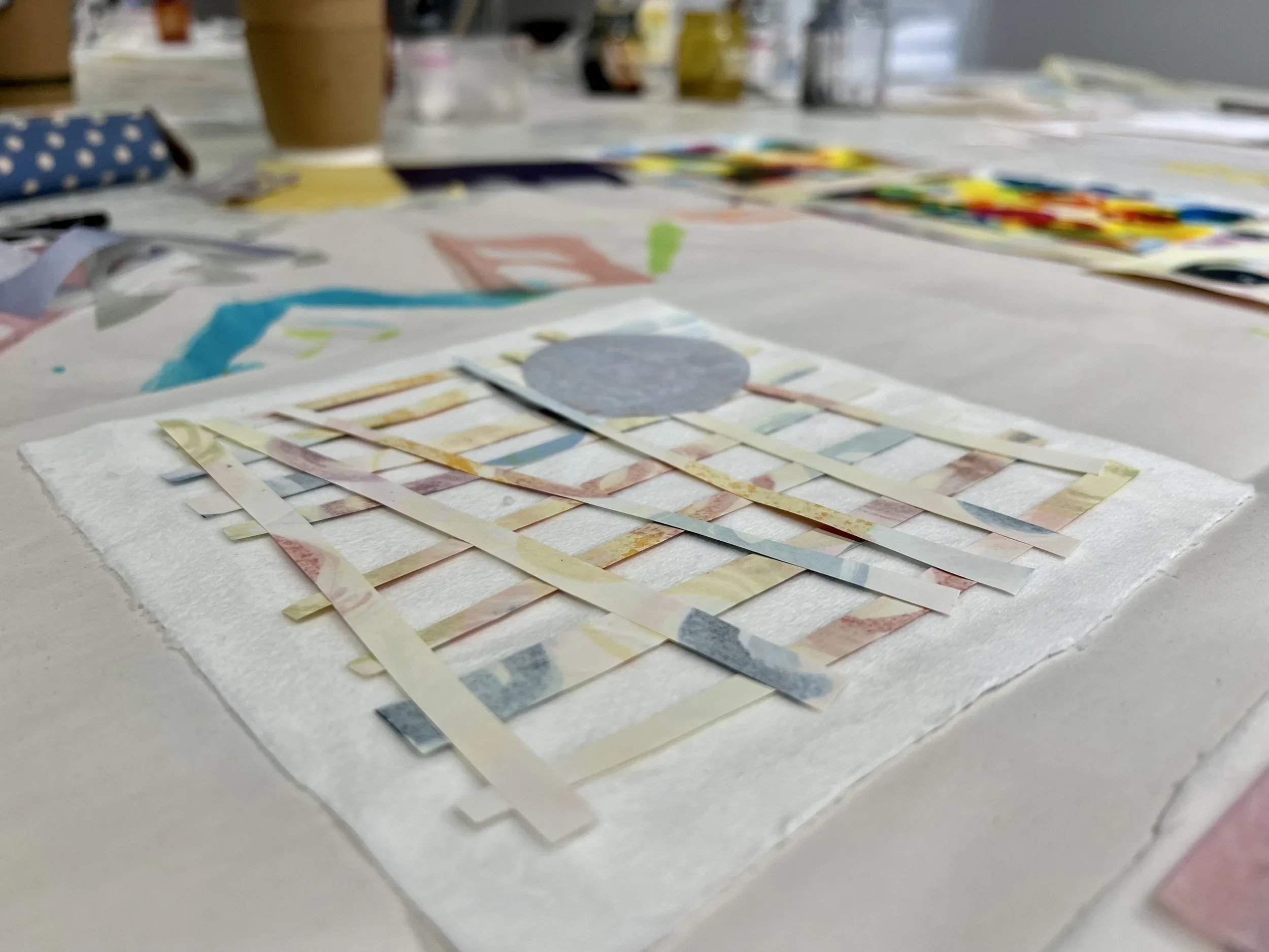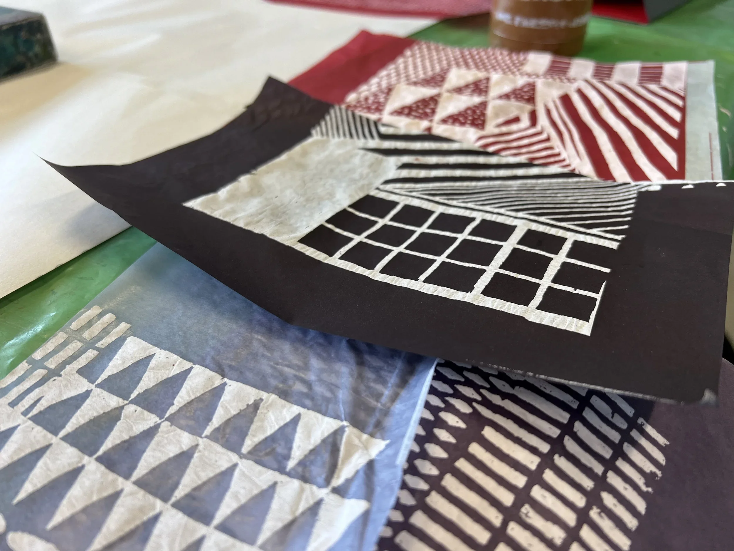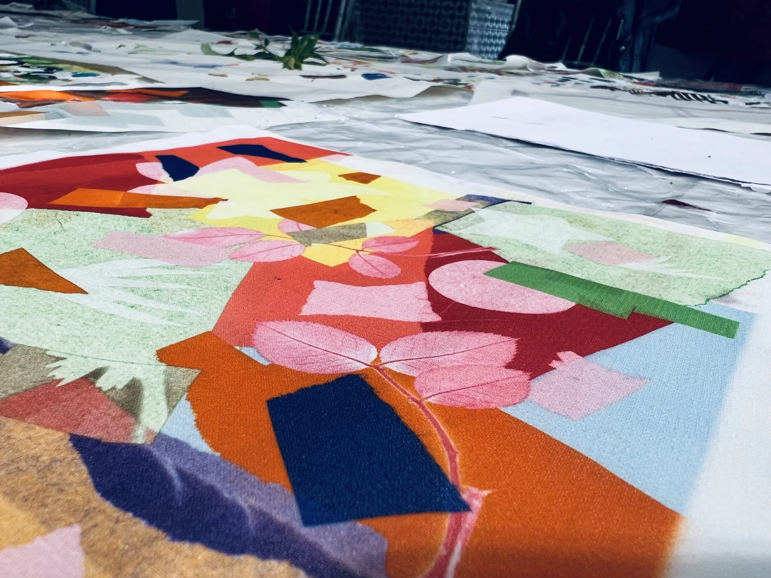 In this workshop, we will draw and mark-make using a wide range of colourful liquid disperse dyes onto paper, techniques include hand painting, screen printing, and relief printing. The dyed papers are then transferred onto fabric using a heat press. Colours can be layered, and flat objects or stencils can be used as resists to create varied textures and effects. The workshop also includes experimentation with ready-made sublimation papers, which may be ripped, scrunched, or combined with hand-cut stencils to create unique printed designs onto fabric. All materials will be provided in this workshop, and participants are encouraged to explore any materials they may have at home for printing during the session.