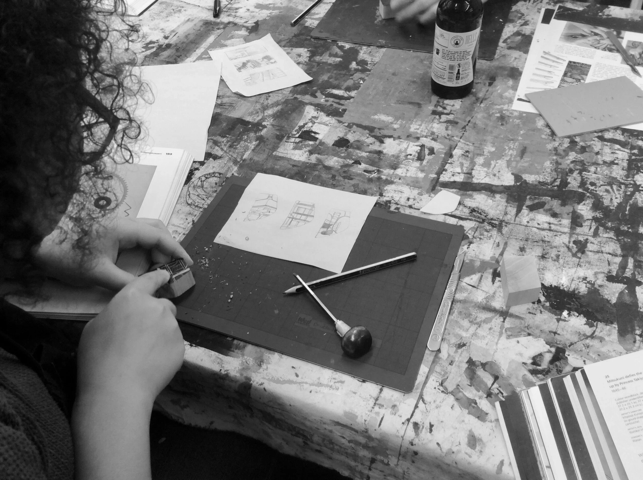Wood engraving is a relief printmaking process using the end-grain of the wood. In this workshop you will be provided with end-grain boxwood blocks and tools to create your marks and patterns onto the surface of the block. At the beginning of the workshop we will draw our designs onto paper, then dent or score the block with your patterns and shapes using the tools provided. Once the blocks are carved, ink the surface using black printing ink and block print onto Japanese paper and also scrap pieces of paper. This workshop is ideal for beginners and for those with a little prior experience.